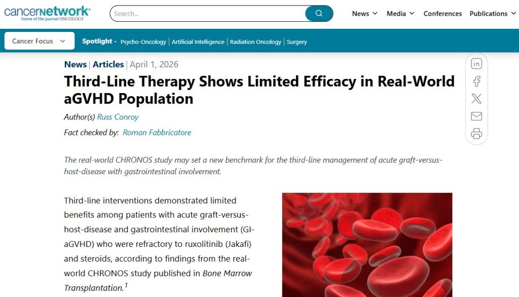 April 1, 2026: Third-Line Therapy Shows Limited Efficacy in Real-World aGVHD Population – Cancer Network
