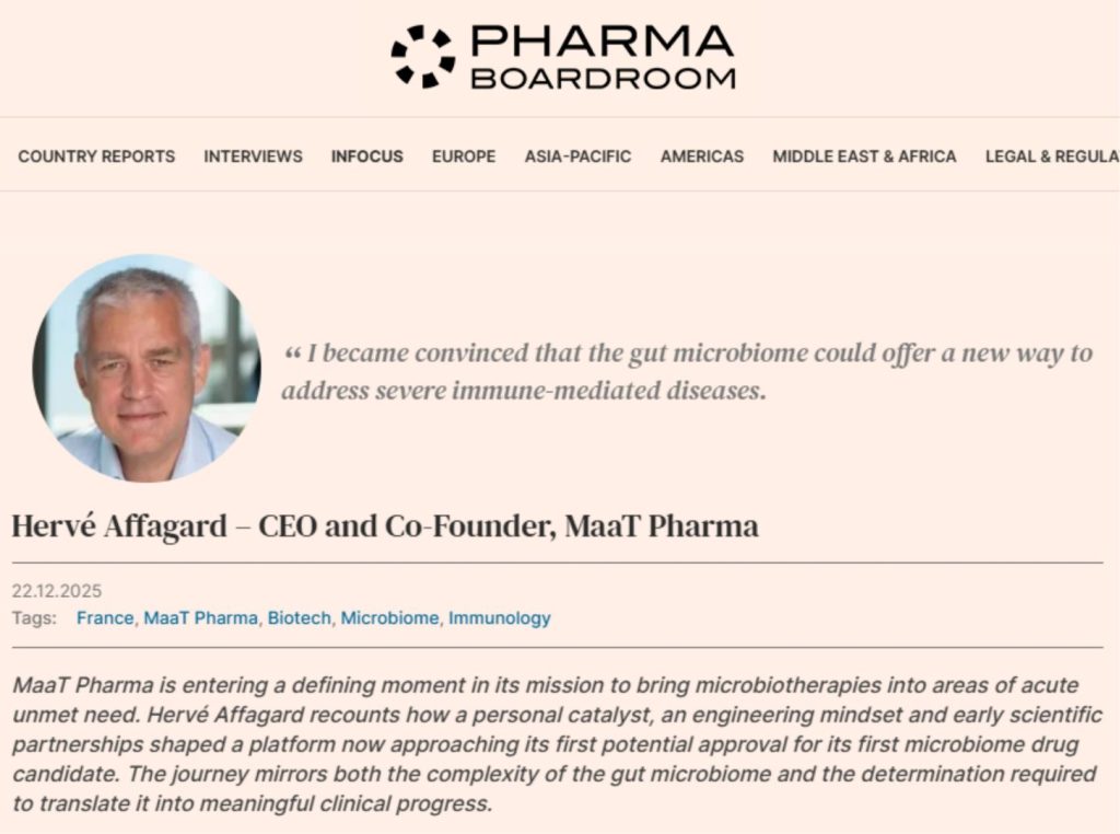 December 22, 2025: Interview of Hervé Affagard – CEO and Co-Founder, MaaT Pharma – Pharma Boardroom
