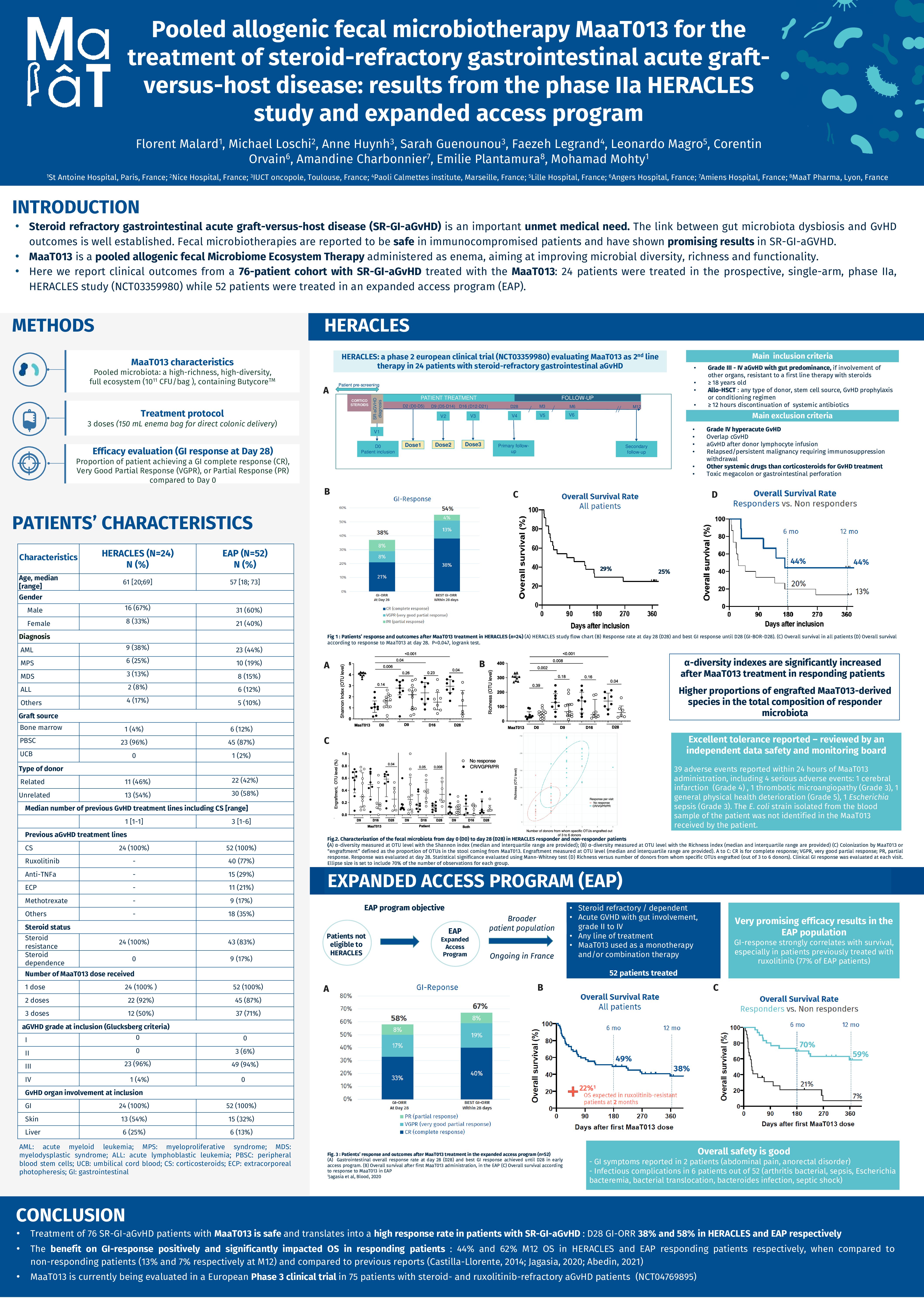 Pooled allogenic fecal microbiotherapy MaaT013 for the treatment of steroid-refractory gastrointestinal acute graft-versus-host disease: results from the phase IIa HERACLES study and expanded access program