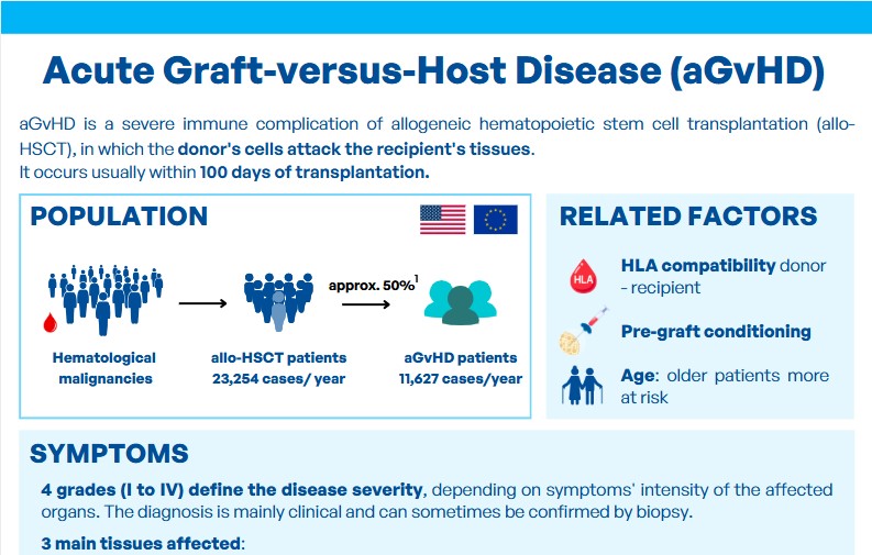 La maladie du greffon contre l’hôte (GvHD) est l’une des complications potentielles après une greffe de cellules souches hématopoïétiques allogéniques (HSCT). On estime que 30 à 50 % des patients développent une GvHD après une GCSH allogénique.