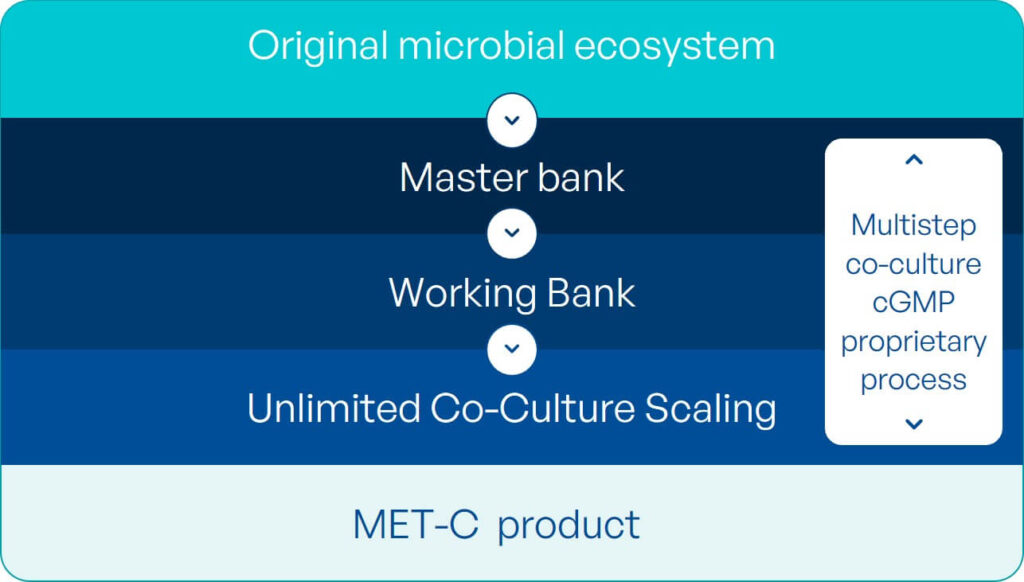 MaaT Pharma’s products, Microbiome Ecosystem Therapies (MET), are high-diversity, high-richness, indication-specific products aiming to leverage the full functional diversity of a large microbiome ecosystem.