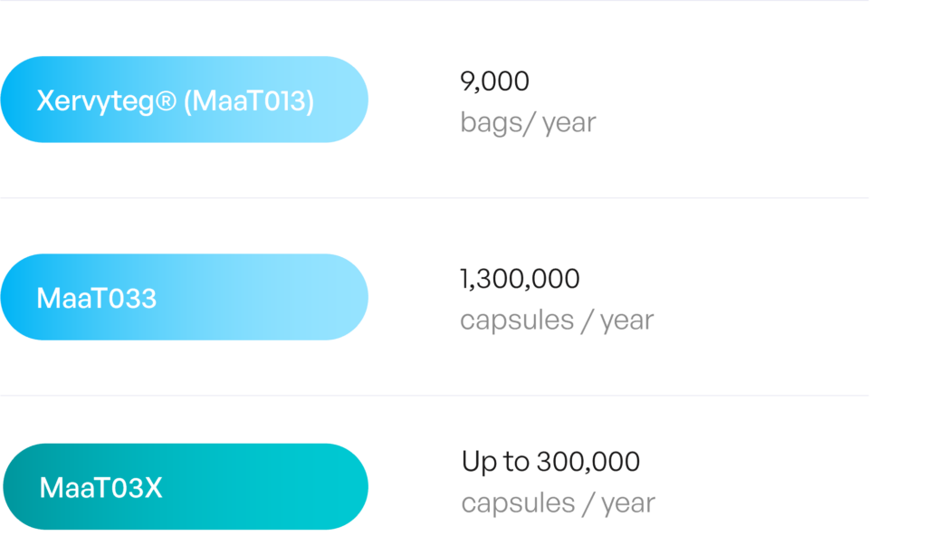 While MaaT Pharma has established a solid proof of concept with native products, large indications will require large-scale manufacturing only accessible through culture technology.